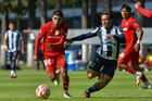 Metepec, Estado de México, 24 de septiembre de 2025. Juan López anota gol, durante el partido correspondiente a la jornada 10 del torneo Apertura 2025 de la Liga BBVA MX categoría Sub21, entre los Diablos Rojos del Toluca y los Rayados del Monterrey, realizado en las instalaciones de Metepec. Foto: Imago7 /Arturo Hernandez