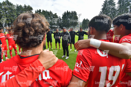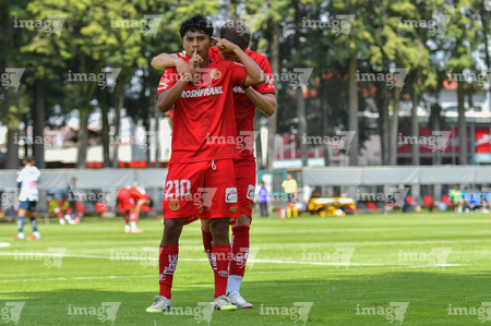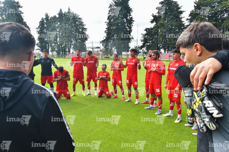 Metepec, Estado de México, 24 de septiembre de 2025. Jugadores del Toluca sub21, durante el partido correspondiente a la jornada 10 del torneo Apertura 2025 de la Liga BBVA MX categoría Sub21, entre los Diablos Rojos del Toluca y los Rayados del Monterrey, realizado en las instalaciones de Metepec. Foto: Imago7 /Arturo Hernandez