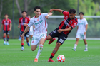 Guadalajara, Jalisco, 27 de septiembre de 2025. Joshua Palacios (I) y Luis Suárez (D), durante el partido correspondiente a la jornada 11 del torneo Apertura 2025 de la Liga BBVA MX categoría Sub21, entre los Rojinegros del Atlas y los Rayos del Necaxa, realizado en la Academia AGA. Foto: Imago7/ Juan Carlos Cubeyro.