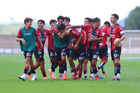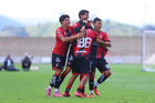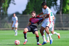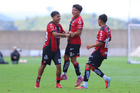 Guadalajara, Jalisco, 27 de septiembre de 2025. Luis Jiménez recibe gol, durante el partido correspondiente a la jornada 11 del torneo Apertura 2025 de la Liga BBVA MX categoría Sub21, entre los Rojinegros del Atlas y los Rayos del Necaxa, realizado en la Academia AGA. Foto: Imago7/ Juan Carlos Cubeyro.