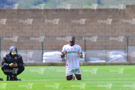 Guadalajara, Jalisco, 27 de septiembre de 2025. Hather Cuestsa en festejo de gol, durante el partido correspondiente a la jornada 11 del torneo Apertura 2025 de la Liga BBVA MX categoría Sub21, entre los Rojinegros del Atlas y los Rayos del Necaxa, realizado en la Academia AGA. Foto: Imago7/ Juan Carlos Cubeyro.