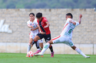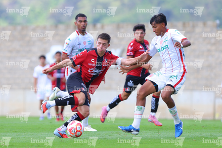 Guadalajara, Jalisco, 27 de septiembre de 2025. Luis Gamboa (I) y Arath Moreno (D), durante el partido correspondiente a la jornada 11 del torneo Apertura 2025 de la Liga BBVA MX categoría Sub21, entre los Rojinegros del Atlas y los Rayos del Necaxa, realizado en la Academia AGA. Foto: Imago7/ Juan Carlos Cubeyro.
