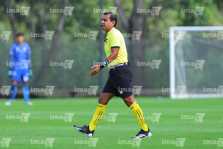 Guadalajara, Jalisco, 27 de septiembre de 2025. Carlos Martínez, Árbitro Central, durante el partido correspondiente a la jornada 11 del torneo Apertura 2025 de la Liga BBVA MX categoría Sub21, entre los Rojinegros del Atlas y los Rayos del Necaxa, realizado en la Academia AGA. Foto: Imago7/ Juan Carlos Cubeyro.