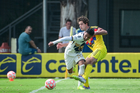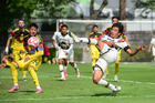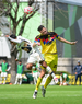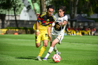 Ciudad de México, 27 de septiembre de 2025. Kevin Borges y Santiago Naveda, durante el partido correspondiente a la jornada 11 del torneo Apertura 2025 de la Liga BBVA MX categoría Sub21, entre las Águilas del América y los Pumas de la UNAM, realizado en Coapa. Foto: Imago7/ Alexis Chavez