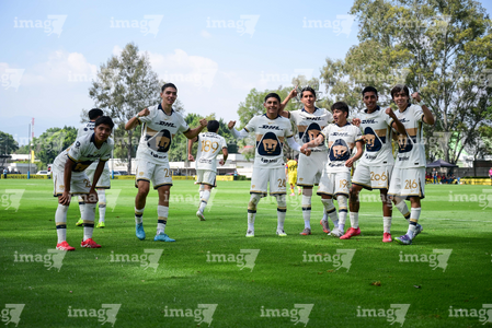 Ciudad de México, 27 de septiembre de 2025. Jugadores de Pumas en festejo, durante el partido correspondiente a la jornada 11 del torneo Apertura 2025 de la Liga BBVA MX categoría Sub21, entre las Águilas del América y los Pumas de la UNAM, realizado en Coapa. Foto: Imago7/ Alexis Chavez