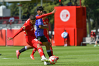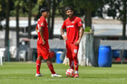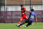 Metepec, Estado de México, 28 de septiembre de 2025. Diego Montoya y Fabricio Francelino, durante el partido correspondiente a la jornada 11 del torneo Apertura 2025 de la Liga BBVA MX categoría Sub21, entre los Diablos Rojos del Toluca y los Cañoneros del Mazatlán FC, realizado en las instalaciones de Metepec. Foto: Imago7/ Arturo Hernandez