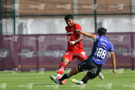 Metepec, Estado de México, 28 de septiembre de 2025. Luis Carrillo y José Estrada , durante el partido correspondiente a la jornada 11 del torneo Apertura 2025 de la Liga BBVA MX categoría Sub21, entre los Diablos Rojos del Toluca y los Cañoneros del Mazatlán FC, realizado en las instalaciones de Metepec. Foto: Imago7/ Arturo Hernandez