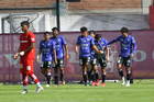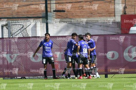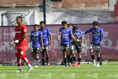 Metepec, Estado de México, 28 de septiembre de 2025. Jugadores de Mazatlán FC sub21 en festejo de gol, durante el partido correspondiente a la jornada 11 del torneo Apertura 2025 de la Liga BBVA MX categoría Sub21, entre los Diablos Rojos del Toluca y los Cañoneros del Mazatlán FC, realizado en las instalaciones de Metepec. Foto: Imago7/ Arturo Hernandez