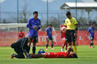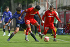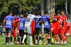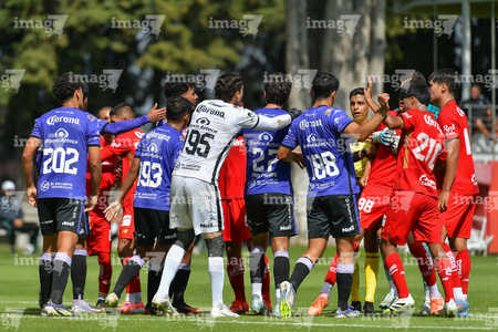 Metepec, Estado de México, 28 de septiembre de 2025. Jugadores del Toluca y Mazatlan sub21 en conato de bronca, durante el partido correspondiente a la jornada 11 del torneo Apertura 2025 de la Liga BBVA MX categoría Sub21, entre los Diablos Rojos del Toluca y los Cañoneros del Mazatlán FC, realizado en las instalaciones de Metepec. Foto: Imago7/ Arturo Hernandez