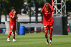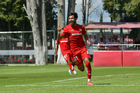 Metepec, Estado de México, 28 de septiembre de 2025. Kevin Martínez en festejo de gol, durante el partido correspondiente a la jornada 11 del torneo Apertura 2025 de la Liga BBVA MX categoría Sub21, entre los Diablos Rojos del Toluca y los Cañoneros del Mazatlán FC, realizado en las instalaciones de Metepec. Foto: Imago7/ Arturo Hernandez