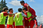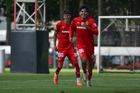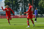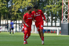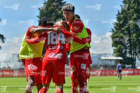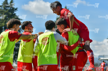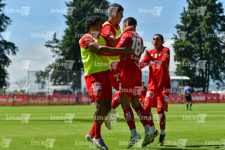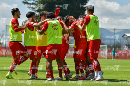 Metepec, Estado de México, 28 de septiembre de 2025. Jugadores del Toluca sub21 en festejo de gol , durante el partido correspondiente a la jornada 11 del torneo Apertura 2025 de la Liga BBVA MX categoría Sub21, entre los Diablos Rojos del Toluca y los Cañoneros del Mazatlán FC, realizado en las instalaciones de Metepec. Foto: Imago7/ Arturo Hernandez
