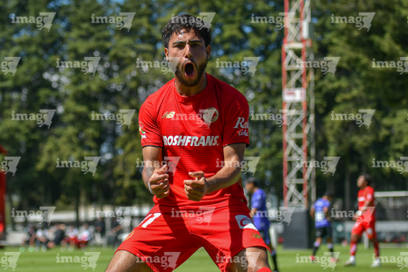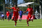 Metepec, Estado de México, 28 de septiembre de 2025. Sebastian Aceves anota gol, durante el partido correspondiente a la jornada 11 del torneo Apertura 2025 de la Liga BBVA MX categoría Sub21, entre los Diablos Rojos del Toluca y los Cañoneros del Mazatlán FC, realizado en las instalaciones de Metepec. Foto: Imago7/ Arturo Hernandez