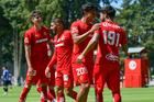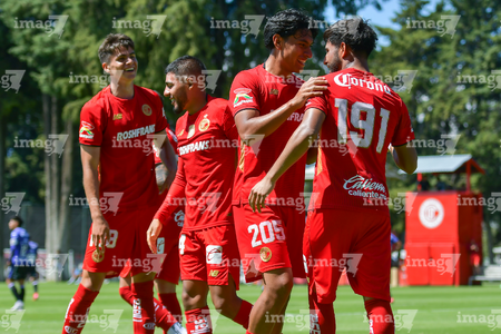 Metepec, Estado de México, 28 de septiembre de 2025. Jugadores del Toluca sub21 en festejo de gol, durante el partido correspondiente a la jornada 11 del torneo Apertura 2025 de la Liga BBVA MX categoría Sub21, entre los Diablos Rojos del Toluca y los Cañoneros del Mazatlán FC, realizado en las instalaciones de Metepec. Foto: Imago7/ Arturo Hernandez