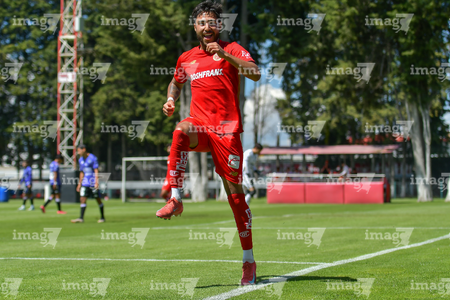 Metepec, Estado de México, 28 de septiembre de 2025. Sebastian Aceves en festejo de gol, durante el partido correspondiente a la jornada 11 del torneo Apertura 2025 de la Liga BBVA MX categoría Sub21, entre los Diablos Rojos del Toluca y los Cañoneros del Mazatlán FC, realizado en las instalaciones de Metepec. Foto: Imago7/ Arturo Hernandez