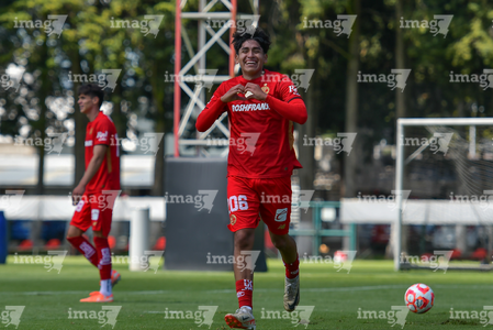 Metepec, Estado de México, 28 de septiembre de 2025. Juan López, durante el partido correspondiente a la jornada 11 del torneo Apertura 2025 de la Liga BBVA MX categoría Sub21, entre los Diablos Rojos del Toluca y los Cañoneros del Mazatlán FC, realizado en las instalaciones de Metepec. Foto: Imago7/ Arturo Hernandez