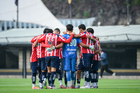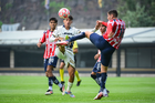 Ciudad de México, 5 de octubre de 2025. Miguel Paul en festejo, durante el partido correspondiente a la jornada 12 del torneo Apertura 2025 de la Liga BBVA MX categoría Sub21, entre los Pumas de la UNAM y las Chivas Rayadas del Guadalajara, realizado en Cantera. Foto: Imago7/ Alexis Chavez