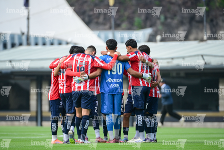 Ciudad de México, 5 de octubre de 2025. Jugadores de Chivas, durante el partido correspondiente a la jornada 12 del torneo Apertura 2025 de la Liga BBVA MX categoría Sub21, entre los Pumas de la UNAM y las Chivas Rayadas del Guadalajara, realizado en Cantera. Foto: Imago7/ Alexis Chavez