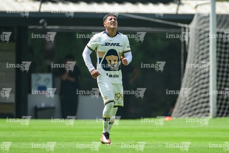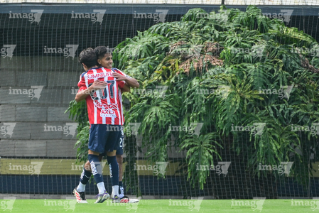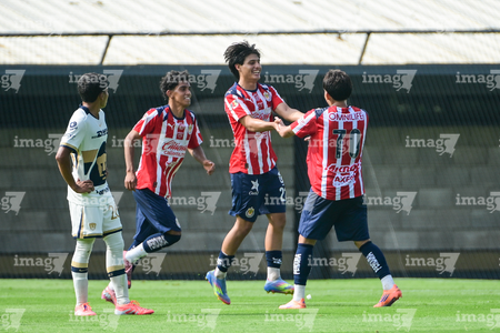 Ciudad de México, 5 de octubre de 2025. v en festejo, durante el partido correspondiente a la jornada 12 del torneo Apertura 2025 de la Liga BBVA MX categoría Sub21, entre los Pumas de la UNAM y las Chivas Rayadas del Guadalajara, realizado en Cantera. Foto: Imago7/ Alexis Chavez