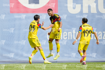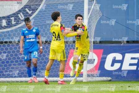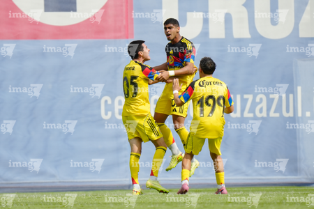 Ciudad de México, 18 de octubre de 2025. Diego Reyes en festejo de gol, durante el partido correspondiente a la jornada 13 del torneo Apertura 2025 de la Liga BBVA MX categoría Sub21, entre la Máquina Celeste del Cruz Azul y las Águilas del América, realizado en La Noria. Foto: Imago7/Diego Padilla