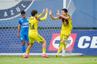 Ciudad de México, 18 de octubre de 2025. Diego Valdéz en festejo de gol, durante el partido correspondiente a la jornada 13 del torneo Apertura 2025 de la Liga BBVA MX categoría Sub21, entre la Máquina Celeste del Cruz Azul y las Águilas del América, realizado en La Noria. Foto: Imago7/Diego Padilla