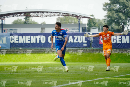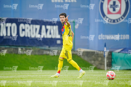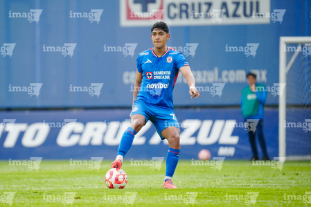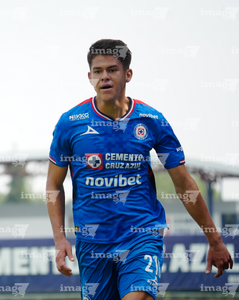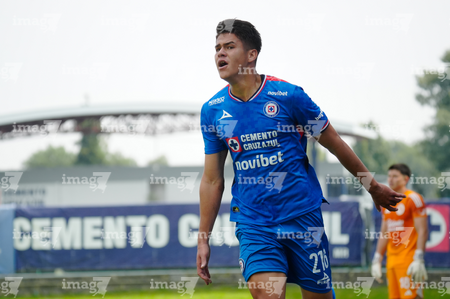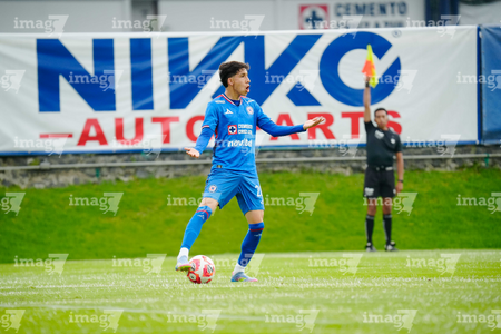 Ciudad de México, 18 de octubre de 2025. Kenneth González, durante el partido correspondiente a la jornada 13 del torneo Apertura 2025 de la Liga BBVA MX categoría Sub21, entre la Máquina Celeste del Cruz Azul y las Águilas del América, realizado en La Noria. Foto: Imago7/Diego Padilla
