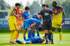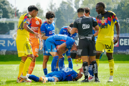 Ciudad de México, 18 de octubre de 2025. Rogelio González resultó lesionado, durante el partido correspondiente a la jornada 13 del torneo Apertura 2025 de la Liga BBVA MX categoría Sub21, entre la Máquina Celeste del Cruz Azul y las Águilas del América, realizado en La Noria. Foto: Imago7/Diego Padilla