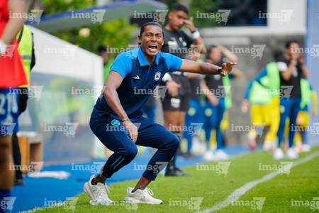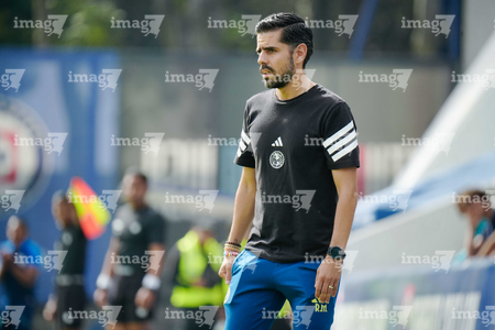 Ciudad de México, 18 de octubre de 2025. Joel Huiqui, Auxiliar Técnico, durante el partido correspondiente a la jornada 13 del torneo Apertura 2025 de la Liga BBVA MX categoría Sub21, entre la Máquina Celeste del Cruz Azul y las Águilas del América, realizado en La Noria. Foto: Imago7/Diego Padilla