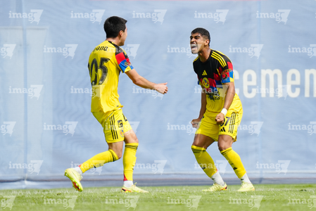 Ciudad de México, 18 de octubre de 2025. Ícaro Da Conceição en festejo de gol, durante el partido correspondiente a la jornada 13 del torneo Apertura 2025 de la Liga BBVA MX categoría Sub21, entre la Máquina Celeste del Cruz Azul y las Águilas del América, realizado en La Noria. Foto: Imago7/Diego Padilla