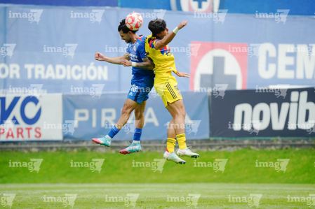Ciudad de México, 18 de octubre de 2025. César Ayón y Diego Valdéz, durante el partido correspondiente a la jornada 13 del torneo Apertura 2025 de la Liga BBVA MX categoría Sub21, entre la Máquina Celeste del Cruz Azul y las Águilas del América, realizado en La Noria. Foto: Imago7/Diego Padilla