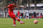 Metepec, Estado de México, 19 de octubre de 2025. José Arroyo , durante el partido correspondiente a la jornada 13 del torneo Apertura 2025 de la Liga BBVA MX categoría Sub21, entre los Diablos Rojos del Toluca y los Gallos Blancos del Querétaro, realizado en las instalaciones de Metepec. Foto: Imago7/ Arturo Hernandez