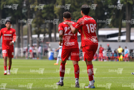 Metepec, Estado de México, 19 de octubre de 2025. , durante el partido correspondiente a la jornada 13 del torneo Apertura 2025 de la Liga BBVA MX categoría Sub21, entre los Diablos Rojos del Toluca y los Gallos Blancos del Querétaro, realizado en las instalaciones de Metepec. Foto: Imago7/