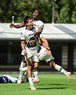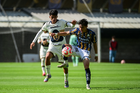 Ciudad de México, 22 de octubre de 2025. Norberto Jimenez y Alan Sandoval, durante el partido correspondiente a la jornada 14 del torneo Apertura 2025 de la Liga BBVA MX categoría Sub21, entre los Pumas de la UNAM y el Atlético de San Luis, realizado en Cantera. Foto: Imago7/ Alexis Chavez