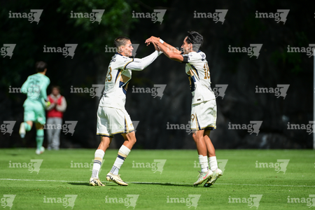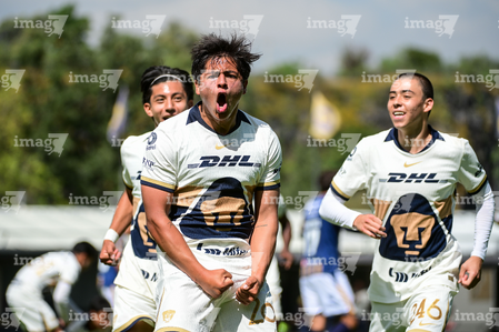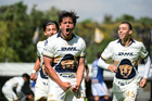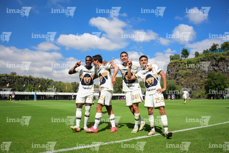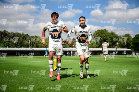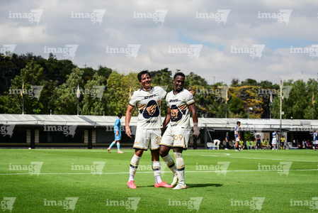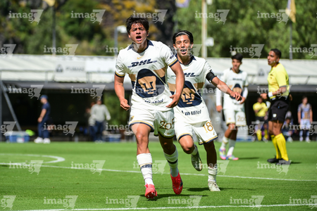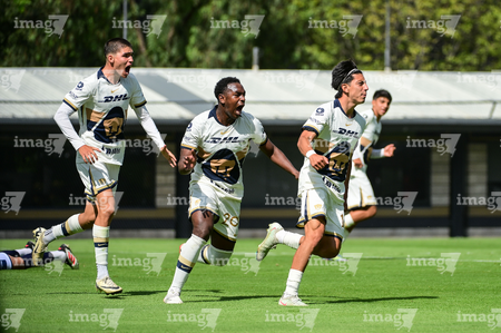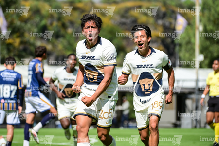 Ciudad de México, 22 de octubre de 2025. Norberto Jimenez en festejo de gol, durante el partido correspondiente a la jornada 14 del torneo Apertura 2025 de la Liga BBVA MX categoría Sub21, entre los Pumas de la UNAM y el Atlético de San Luis, realizado en Cantera. Foto: Imago7/ Alexis Chavez
