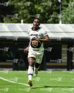 Ciudad de México, 22 de octubre de 2025. Carlos Rodas en festejo, durante el partido correspondiente a la jornada 14 del torneo Apertura 2025 de la Liga BBVA MX categoría Sub21, entre los Pumas de la UNAM y el Atlético de San Luis, realizado en Cantera. Foto: Imago7/ Alexis Chavez