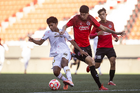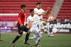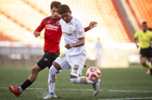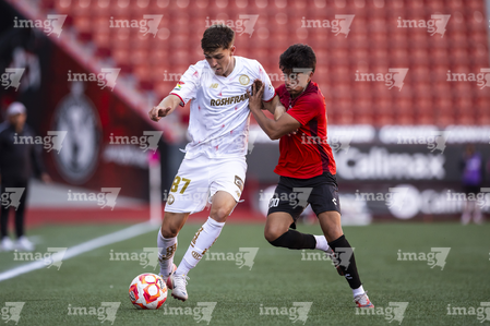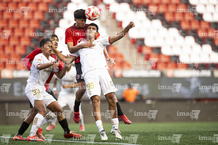 Tijuana, Baja California, 22 de octubre de 2025. Ramiro Franco y Juan López, durante el partido correspondiente a la jornada 14 del torneo Apertura 2025 de la Liga BBVA MX categoría Sub21, entre los Xolos de Tijuana y los Diablos Rojos del Toluca, realizado en el Estadio Caliente. Foto: Imago7/Alejandro Gutiérrez Mora