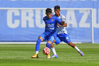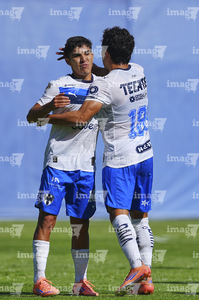Ciudad de México, 25 de octubre de 2025. Rogelio González y Alessandro Tagle, durante el partido correspondiente a la jornada 15 del torneo Apertura 2025 de la Liga BBVA MX categoría Sub21, entre la Máquina Celeste del Cruz Azul y los Rayados del Monterrey, realizado en La Noria. Foto: Imago7/