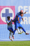 Ciudad de México, 25 de octubre de 2025. Cristian Reyes y Diego Valdéz, durante el partido correspondiente a la jornada 15 del torneo Apertura 2025 de la Liga BBVA MX categoría Sub21, entre la Máquina Celeste del Cruz Azul y los Rayados del Monterrey, realizado en La Noria. Foto: Imago7/