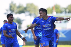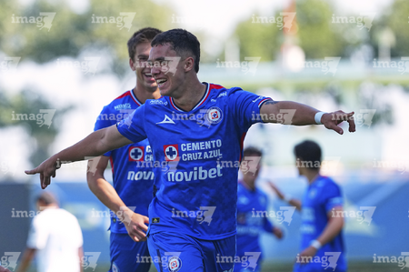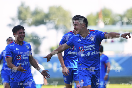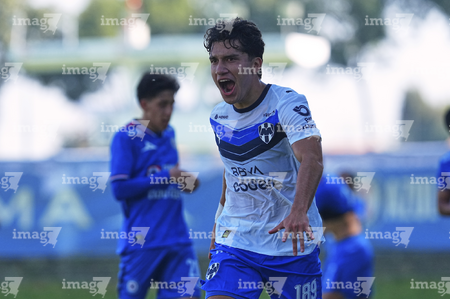 Ciudad de México, 25 de octubre de 2025. Mateo Levy en festejo de gol, durante el partido correspondiente a la jornada 15 del torneo Apertura 2025 de la Liga BBVA MX categoría Sub21, entre la Máquina Celeste del Cruz Azul y los Rayados del Monterrey, realizado en La Noria. Foto: Imago7/
