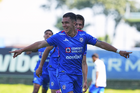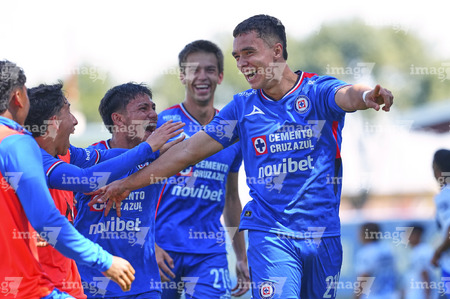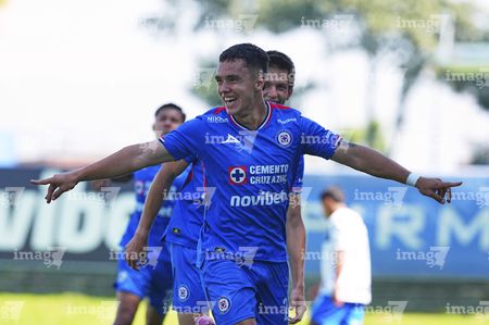 Andrés Gudiño en festejo, durante el partido correspondiente a la jornada 15 del torneo Apertura 2025 de la Liga BBVA MX categoría Sub21, entre la Máquina Celeste del Cruz Azul y los Rayados del Monterrey, realizado en La Noria. Foto: Imago7/