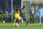 Ciudad de México, 1 de noviembre de 2025. Christopher Mora y , durante el partido correspondiente a la jornada 16 del torneo Apertura 2025 de la Liga BBVA MX categoría Sub21, entre las Águilas del América y los Esmeraldas del León, realizado en Coapa. Foto: Imago7/