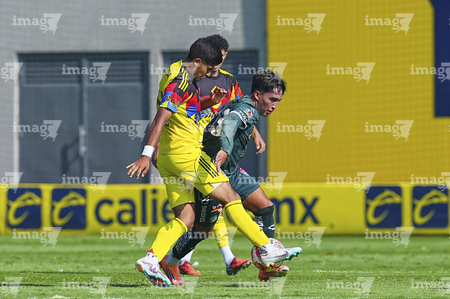 Ciudad de México, 1 de noviembre de 2025. y Jesús Lara, durante el partido correspondiente a la jornada 16 del torneo Apertura 2025 de la Liga BBVA MX categoría Sub21, entre las Águilas del América y los Esmeraldas del León, realizado en Coapa. Foto: Imago7/