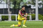 Ciudad de México, 1 de noviembre de 2025. Santiago Naveda en lamento, durante el partido correspondiente a la jornada 16 del torneo Apertura 2025 de la Liga BBVA MX categoría Sub21, entre las Águilas del América y los Esmeraldas del León, realizado en Coapa. Foto: Imago7/