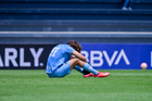 Toluca, Estado de México, 5 de septiembre de 2025. Saul Gutiérrez en lamento, durante el partido correspondiente a la jornada 5 del Torneo Internacional de Fuerzas Básicas 2025 de la Liga BBVA MX, entre los Pumas de la UNAM y los Rayados del Monterrey, celebrado en la Federación Mexicana de Futbol. Foto: Imago7/ Mauricio Ruiz