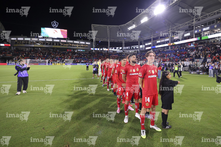 Carson, California, Estados Unidos, 1 de octubre de 2025. Protocolo, durante el partido correspondiente al Campeones Cup 2025, entre el LA Galaxy y los Diablos Rojos del Toluca, realizado en el Dignity Health Sports Park. Foto: Imago7/ Rafael Vadillo