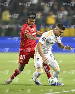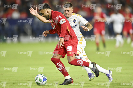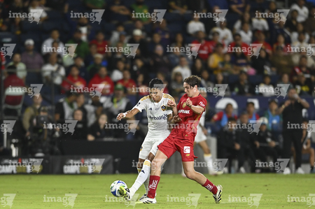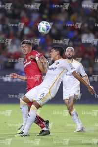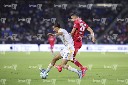 Carson, California, Estados Unidos, 1 de octubre de 2025. Jesús Angulo "Canelo" y Alexis Vega, durante el partido correspondiente al Campeones Cup 2025, entre el LA Galaxy y los Diablos Rojos del Toluca, realizado en el Dignity Health Sports Park. Foto: Imago7/ Etzel Espinosa