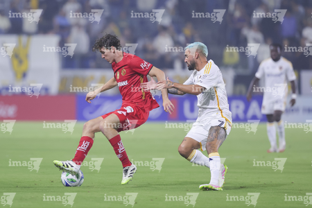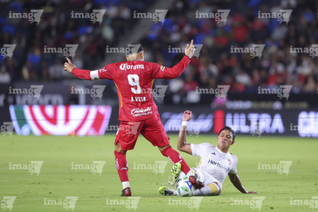 Carson, California, Estados Unidos, 1 de octubre de 2025. Julian Aude y Alexis Vega, durante el partido correspondiente al Campeones Cup 2025, entre el LA Galaxy y los Diablos Rojos del Toluca, realizado en el Dignity Health Sports Park. Foto: Imago7/ Rafael Vadillo