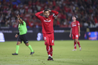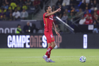 Carson, California, Estados Unidos, 1 de octubre de 2025. Paulinho en festejo de gol que fue anulado, durante el partido correspondiente al Campeones Cup 2025, entre el LA Galaxy y los Diablos Rojos del Toluca, realizado en el Dignity Health Sports Park. Foto: Imago7/ Rafael Vadillo