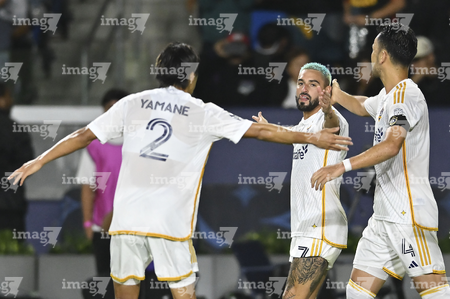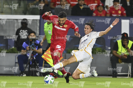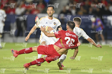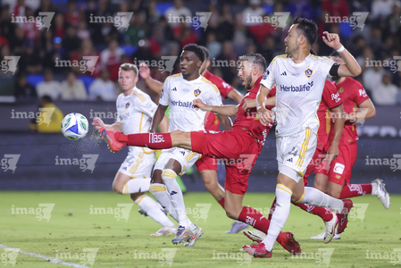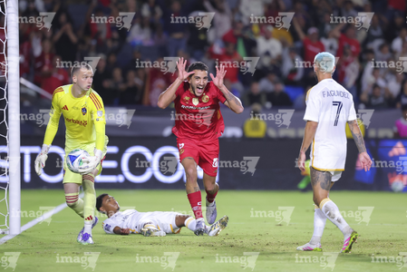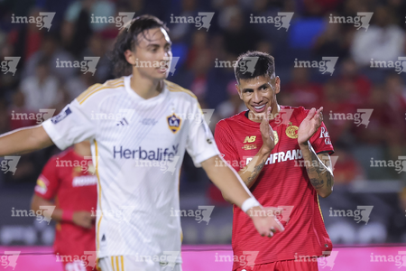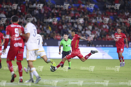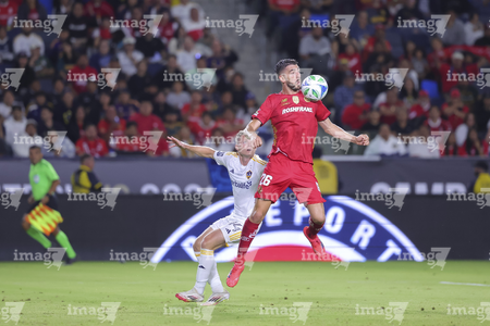 Carson, California, Estados Unidos, 1 de octubre de 2025. Luis García recibe gol de penal, durante el partido correspondiente al Campeones Cup 2025, entre el LA Galaxy y los Diablos Rojos del Toluca, realizado en el Dignity Health Sports Park. Foto: Imago7/ Etzel Espinosa