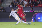 Carson, California, Estados Unidos, 1 de octubre de 2025. Mikel Arriola (I), durante el partido correspondiente al Campeones Cup 2025, entre el LA Galaxy y los Diablos Rojos del Toluca, realizado en el Dignity Health Sports Park. Foto: Imago7/ Etzel Espinosa