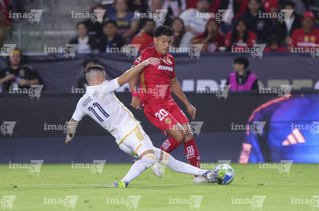 Carson, California, Estados Unidos, 1 de octubre de 2025. Marcel Ruiz y Diego Fagundez, durante el partido correspondiente al Campeones Cup 2025, entre el LA Galaxy y los Diablos Rojos del Toluca, realizado en el Dignity Health Sports Park. Foto: Imago7/ Rafael Vadillo